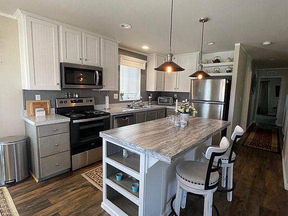 Be the talk of the 55+ community in this 2021 home. It boasts a no-fuss trek deck under a covered patio, new flooring in the kitchen, living, and hallway. A heat pump for a comfortable and efficient temperature control, Kinetico drinking water system, along with a beautiful modern kitchen. This beauty is move in ready! Hurry it won't last long.