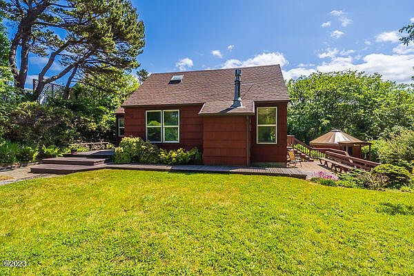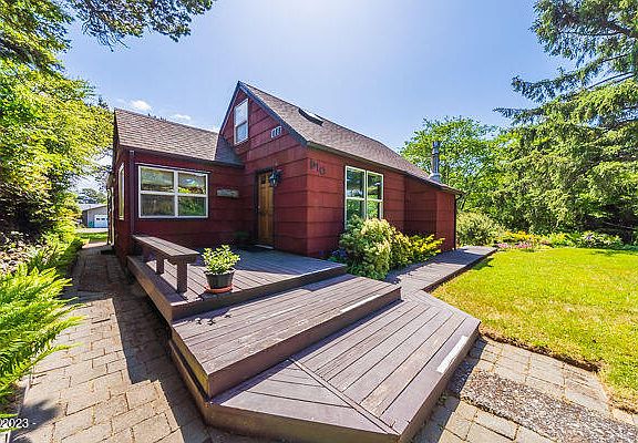 This is a gem! A magical charming home located in the heart of Newport NW Nye district but secluded with privacy. Surrounded by lush green, birders paradise, garden, hot tub and YURT! Lovingly maintained inside and out 4 bedroom 2 bath cottage, 5 bedrooms w/Yurt. Gas stove fireplace, gas cooking, open kitchen living to dining. Bedroom or family room on main with bath and mud laundry room. 3 bedrooms up stairs and a bath, The current family has enjoyed the home for decades. Big surround manicured yard, dry shed, storage galore and a funky stand up crawl space (original) to the home. You barely see your neighbors. This is easy to become enchanted here.
