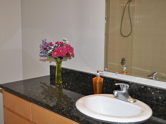 One Bedroom One Bath 760 Sq Ft Willamette River View from each room New Hardwood floor Walk-in Closet Granite counter tops Stainless Steel Appliance with Refrigerator Washer and Dryer are included Large Patio Air Conditioning Covered Parking space just in front of the unit. Utilities are included in the rent except Elec. Large Patio looking down to Gas Grill BBQ, Fire Pits, Swimming pool and Hot tub Jogging Paths, Gazebo Near Bus. Max line, Cafe and Market 1 year