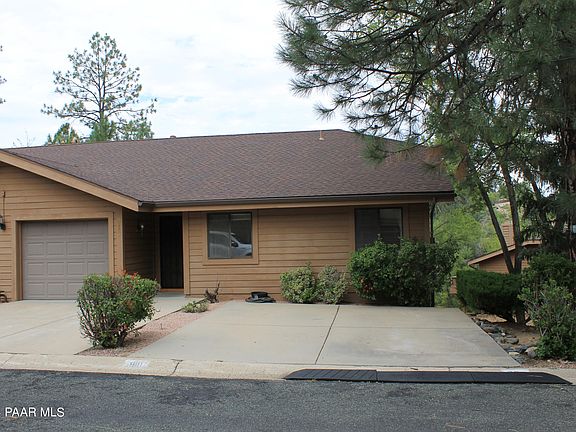 This is the Largest Model in the Complex 1256 SqFt. 2 Bed 2 Bath with Den that could be a bedroom by adding door. Unit has a parking pad out front and a 1 car garage attached.Unit has a covered deck off dinning area, skylights through out. Primary Bedroom has a walk in closet. Natural growth trees provide privacy for primary bedroom and living area. Take a moment to listen and enjoy this quite neighborhood. Come, make this property yours.