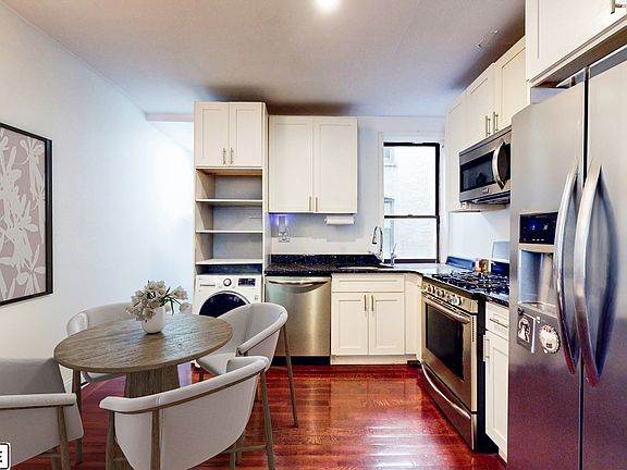 In-unit washer and dryerPicturesque tree-lined blocksWell-maintained buildingSleek stainless steel appliances