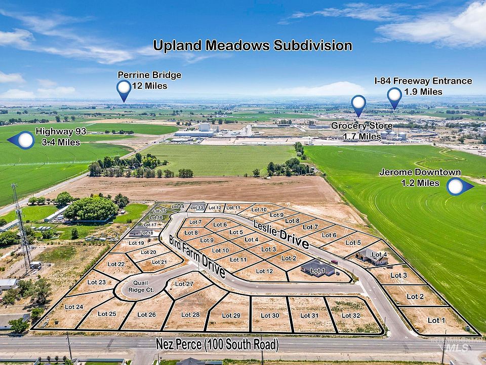 Welcome to Upland Meadows a Jerome Idaho Subdivision. Located on the East side of Jerome Idaho with easy access to town, South Lincoln, State Hwy 25, Highway 93 and Interstate 80. Build your home here or Bring your favorite builder. All lots have Idaho Power, Intermountain Gas, Sparklight, City Water and City Sewer. Smaller lots can have 1400 sq. ft. homes with Larger lots with a 1600 sq. ft. minimum. All Covenants and Restrictions are recorded and available. Lots are building permit ready. Please call with any questions or availability of lots. Pictures are of this lot and the others surrounding it in the Subdivision.