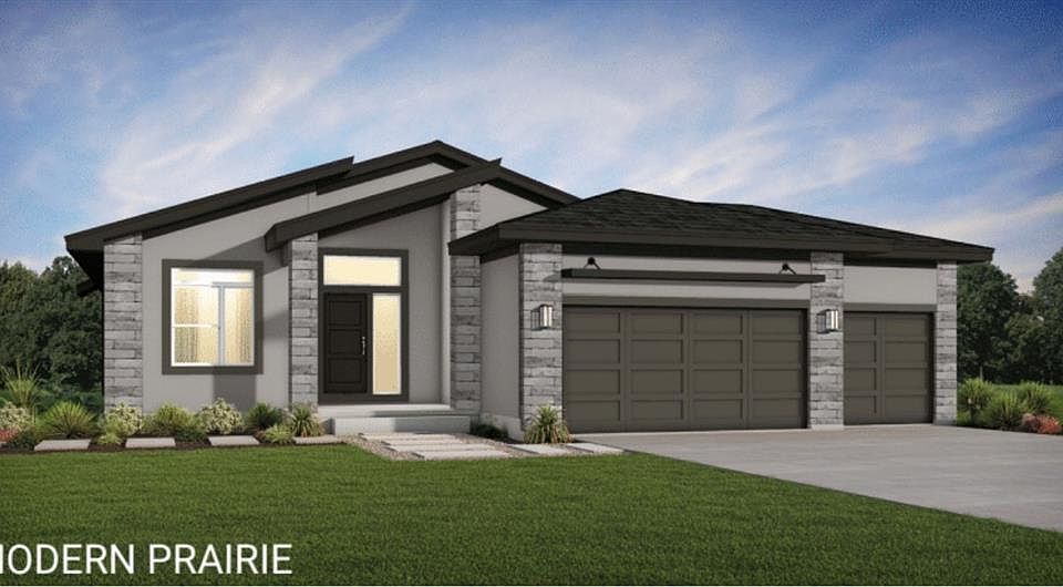 This Reverse Meadowbrook by Award Winning Summit Homes, has it all inside and out. Brand New Modern Prairie elevation on this oversized corner home-site. 4 bedrooms 3 baths with primary bedroom on the main level, guest bedroom on the main level, a finished lower level with a giant rec room 2 more full bedrooms a shared bath and an adaptable space for an extra office, game room, or playroom. Wood floors on the main level, giant kitchen with walk in pantry and butler area. Mudroom hallway leads to laundry to primary closet to primary bath to primary bedroom, perfect flow. Open concept floor plan perfect for entertaining.