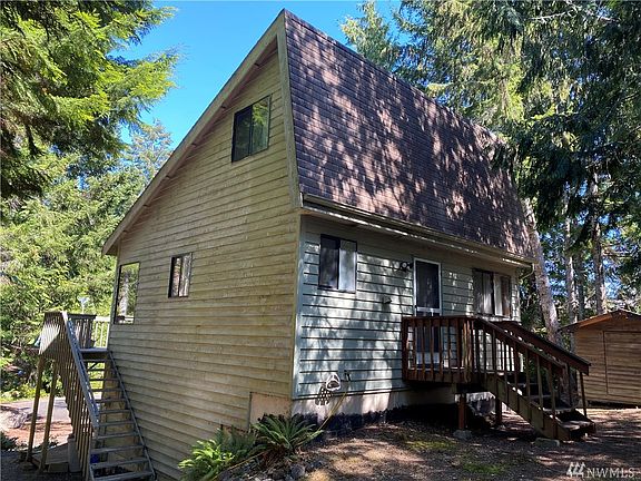 Unique design three level home with charming nooks and loft creates more room for people than square footage would suggest. Great location on quiet cul de sac in Pleasant Tides. Community beach a short walk, boat launch and marina nearby. Deck off main level with partial view of pleasant Harbor entrance. Good sized yard with 2 large. Wonderful getaway home/cabin only 2 hours from Seattle. Waterfront lot next door for sale now! See nwmls #1658534, buy both to create large waterfront estate!