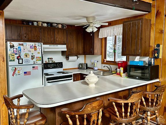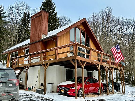 Lovely home situated on 3.43 acres of beautiful property, stone walls, trees and a view of Windham Mountain, the high peaks and more, abuts NYC land on two sides, private and sun filled home.Full basement with wood burning stove and laundry, can be finished into whatever you want, family room, bedroom etc. The main level is open concept, the front has a wall of glass, faces south, take advantage of the warmth of the sun and those amazing views. Galley kitchen with breakfast bar, full bath with tub and main bedroom on this level. Beautiful windows and views from each room. The third level is a bedroom and half bath. This home has been lovingly maintained. The property os beautiful. A real doll house. Peaceful, serene and yet convenient. Watch the wild life from this home.