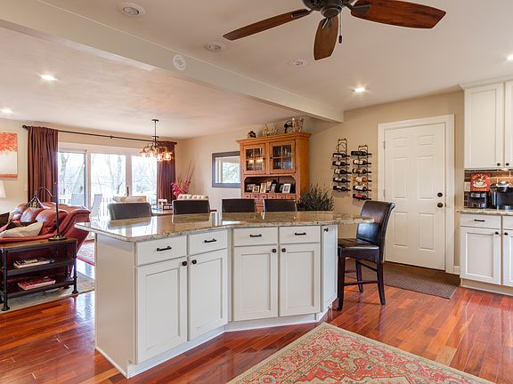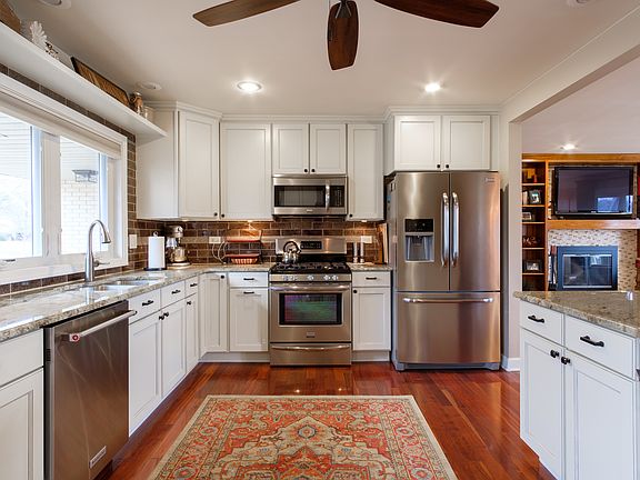Stunning with all the bells & whistles! Beautifully decorated and bathed in light this gorgeous ranch style home has it all. An entry with closet welcomes you into an open plan living area, a chefs dream kitchen complete w/granite counter-tops, tile back-splash, SS appliances and island breakfast bar overlooks the living room w/stone fireplace & custom built wood surround, dining area and double sliding doors leading to a huge maintenance free deck offering picturesque views of the backyard and golf course. 4 bedrooms and 3 bathrooms including an elegant master suite w/separate dbl shower, custom vanity w/sinks and closet. Fully finished LL w/ a large rec-room w/fireplace, a stylish 2nd kitchen-perfect for entertaining, laundry area and walkout to a covered patio. All new windows and doors, invisible dog fence, county taxes.