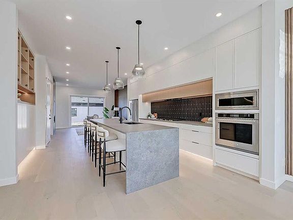 This upscale infill blends high-end design with everyday practicality, offering a legal two-bedroom basement suite (Approved with the development permit by the city) – perfect as a mortgage helper or for extended family! With an open-concept main floor, a luxurious primary suite, and a prime inner-city location, this home is built for both comfort and convenience! Step inside to a bright, welcoming foyer where sleek finishes and warm wood tones on the built-ins set the stage before leading to a sun-filled dining room at the front of the home. Large windows bring in natural light, making this space perfect for hosting or casual meals. The chef-inspired kitchen sits at the heart of the home, featuring ceiling-height custom cabinetry, dark grey countertops, a waterfall-edge island with oak accents and LED skirt lighting, plus a high-end appliance package. A seamless flow into the living room makes entertaining effortless – cozy up by the floor-to-ceiling grey porcelain tile gas fireplace, framed by custom shelving with warm LED accent lighting. Off the main space, a mudroom with built-ins keeps things organized, offering direct backyard and garage access. A sleek powder room is tucked away nearby, along with a main floor office – ideal for working from home, complete with a large window and built-in desk. Head upstairs, where a spacious bonus room greets you at the top of the stairs. Whether it’s a cozy movie night spot, a play area, or a second lounge, this flexible space adapts to your needs. The primary suite is a retreat you’ll never want to leave, designed with a soft, neutral palette that feels warm and inviting. The spa-like ensuite features a deep soaker tub, a glass-enclosed shower, and a double vanity with designer tile selections throughout. A large walk-in closet with custom shelving completes the space, making it as functional as it is luxurious. Two additional good-sized bedrooms, a sleek main bathroom, and a convenient laundry room with built-in storage complete the upper level. The fully finished legal suite (subject to permits and approvals by the city) is a game changer – offering a bright and modern two-bedroom space with its own entrance. Whether you’re looking for a rental income opportunity or a private space for family, this suite has everything needed for comfortable independent living. It includes an open living area, a stylish kitchen, and a full bathroom with the same high-end finishes found throughout the home. Nestled in Renfrew, this home offers walkable access to Bridgeland’s top cafés, restaurants, and boutiques. Enjoy brunch at Blue Star Diner, fresh groceries from Blush Lane, or a drink at Bridgeland Distillery. Outdoor lovers will appreciate Tom Campbell’s Hill and Bottomlands Park, while families will love being close to St. Alphonsus, Children’s Village, and Colonel Macleod School. Downtown is just 5 minutes away, with quick access to Edmonton Trail, 16th Ave, and Deerfoot Trail.