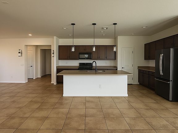This freshly painted, beautifully maintained 3-bedroom, 3 bath home in Buckeye's desirable Blue Horizons community. Features a bright open floor plan, tile floors, and a modern kitchen with stainless steel appliances, granite counters, and a large island. The spacious primary suite offers a walk-in closet and dual sinks. TV in garage, but we are unaware if it is functioning. Enjoy a private, low-maintenance backyard, 2-car garage, washer/dryer, and access to community parks and trails. Conveniently located near I-10, shopping, and schools!