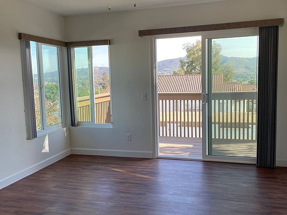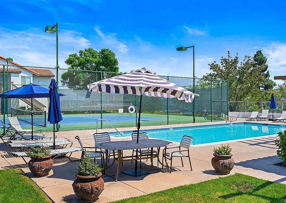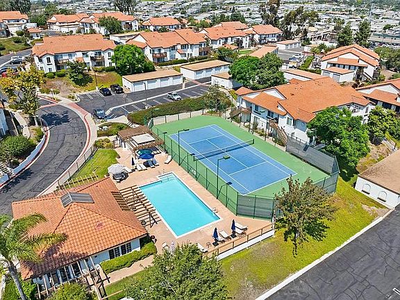 Epic view!! Bright and airy 2-bedroom 2-bath corner unit condo in Sommerset by the Lake, a desirable community overlooking San Marcos and surrounding mountains. Enjoy an intimate glimpse of the city from private second-floor balcony with a striking vantage point and perfect light. Resort-style amenities include a pool, spa, tennis court, and workout room. Smart, comfortable floor plan with air conditioning, heat, and ceiling fan in each room. Large walk-in closet in master bedroom. Washer/dryer in unit. Surplus of storage throughout. Detached 1-car garage plus 1 assigned space. Water and trash included. Top-rated schools include La Costa Meadows Elementary School, San Elijo Middle School, and San Marcos High School, located across the street. Short walk to grocery stores, shops, restaurants, and Lake San Marcos. Easy freeway access. Minutes to the coast. -One-year lease term. -Owner pays for water and trash. -Renter is responsible for gas/electric and cable/WIFI. -Security deposit and first month's rent are due at signing. -No sub-lease permitted. -No smoking allowed. -Either one cat or one small dog with additional deposit. -Renter must adhere to all Homeowner Association rules and guidelines.