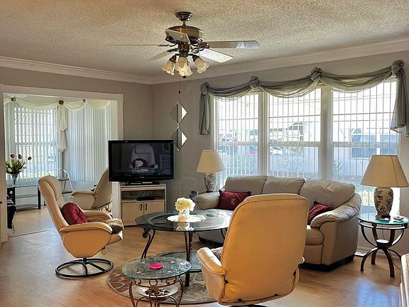 This is the one you have been waiting for as it's move in ready & priced to sell quickly. Furnished end condo in section 1 w/impact windows installed 2009 + drop down awning shutters. Laminate flooring throughout, crown molding, mirrored dining wall, kitchen w/stainless appliances. Nicely appointed window treatments w/pretty swags hanging over verticals throughout the rooms. Both front & back exterior doors changed. FL RM opened w/AC vent therefore part of total living space. Water heater new in 2022. All water piping PVC instead of copper as association replaced through attic. Metal drop-down stairs to attic, seller indicated shelves & lights in this area for additional storage space. Toggle switches in all rooms. Seller's loss is your gain. HURRY CALL NOW!!