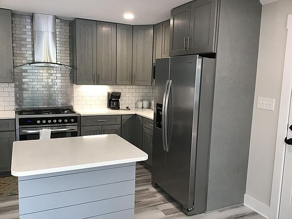 Gas stoveSide by side refrigeratorQuartz countertopsNew cabinetsStainless steel appliances