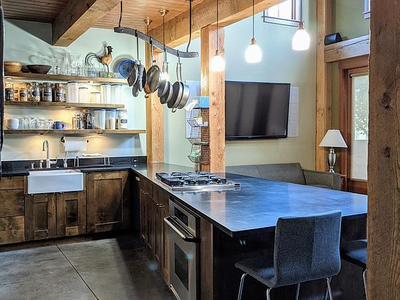 Its design is what we call "modern log cabin." Inside and out is fun and designed to be livable, with comfortable and sometimes quirky art and furnishings. It has everything you need to lounge, cook, and/or work, with bedrooms offering a king bed (primary bedroom), a queen bed (second bedroom), and a twin bed (3rd bedroom, this can potentially be converted to king, if necessary). There's a dedicated office/reading room and multiple outdoor areas for enjoying the views and great Boulder weather. The office has a couch that converts to a full size bed that could easily work as a fourth bedroom, if needed.