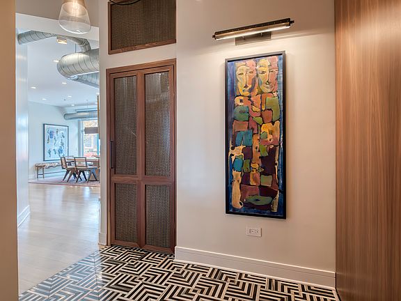 Idyllic and centrally located in the heart of the West Loop, this luxurious 3 bed | 3 bath penthouse loft combines two units into one stunning residence with high-end finishes and an unmatched outdoor retreat: a private, 1,500 square foot wraparound terrace with professional landscaping. The home's modern layout begins with a dramatic foyer featuring Italian marble tile and custom backlit walnut display shelving/cabinetry. The open-concept living and dining area impresses with soaring ceilings, oak hardwood flooring, and generous space for a large sectional and formal dining - Perfect for entertaining. The chef's kitchen showcases white shaker cabinetry, marble countertops with a waterfall edge and breakfast bar seating, a premium Viking/Bosch appliance suite, and a walk-in butler's pantry complete with a U-Line wine cabinet. A spacious family room centers around a sleek gas fireplace, surround sound entertainment system, and a full wet bar with marble and walnut finishes. Two beautifully appointed secondary bedrooms complete the home's sleeping quarters. The first features custom closets and connects to a guest bath with an RH vanity and Kohler fixtures. The second doubles as a versatile WFH office, offering custom built-ins, a murphy bed/sofa, walnut pocket doors, and an elegant ensuite bath. The primary suite is a private sanctuary with a custom walk-in closet, dedicated workout nook, and spa-like ensuite bath featuring a dual vanity and a standalone soaking tub. The show stopping wrap around and walk out terrace delivers endless opportunities for entertaining and relaxation. This L-shaped outdoor oasis features 20 self-irrigating planters, lush perennial landscaping, and sweeping, unobstructed skyline views - Fully equipped and furnished. Ideally located a stone's throw to Mary Bartelme Park/Green City Market, Skinner, Whole Foods, Mariano's, West Loop Market, Monteverde, Trivoli Tavern, Restaurant Row, and all that the West Loop/Fulton Market shopping and restaurant scenes have to offer! One indoor heated garage parking space included. A second indoor heated garage parking space is available for an additional $250/month. Please contact Collin for furnishing inclusions.