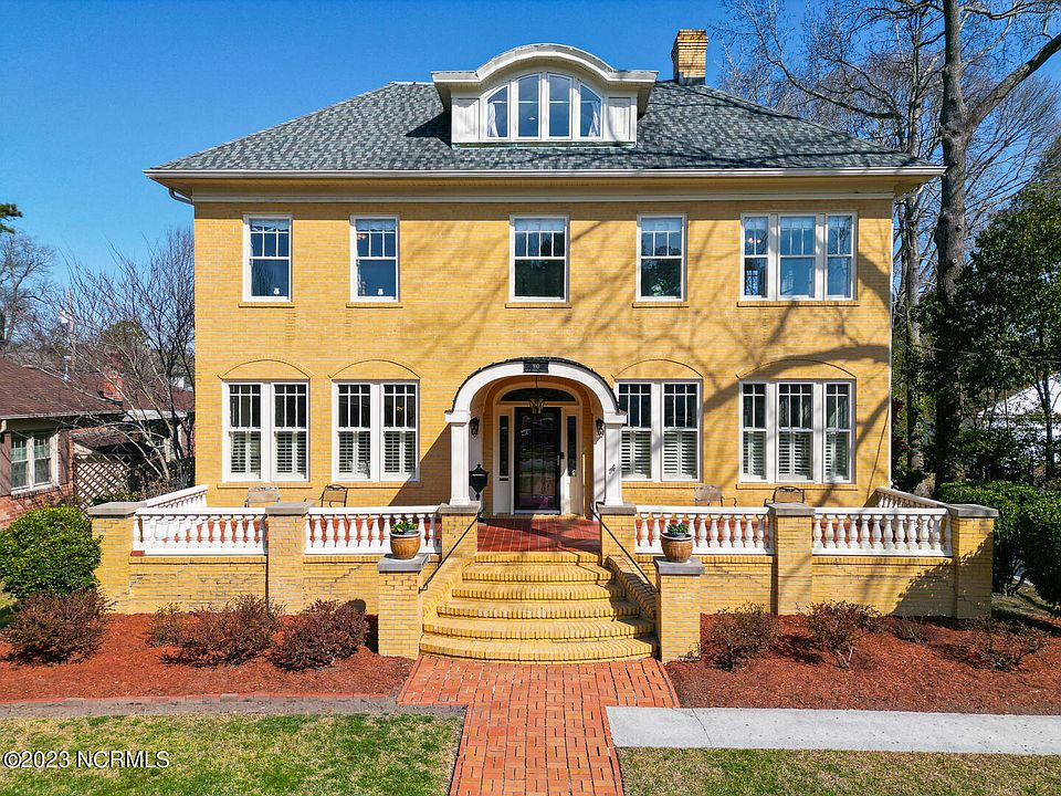 This distinctive yellow brick home has presence from the brick sidewalk to the uncovered terrace to the lovely grounds. Built ca, 1926, the character is intact with accommodations for today's lifestyle. Traditional materials include hardwood floors, a brick fireplace, and leaded glass French doors. Carefully restored with new and renovated systems for energy efficiency and convenient living spaces. Formal living and dining rooms, 2 office spaces with windows shaded by the canopy of mature trees. Kitchen is filled with natural light, has a large pantry and adjacent laundry room and sunroom. Three bedrooms and a comfortable 3rd floor suite allow plenty of quiet spaces. Home gym space, walkout from the roof, cast iron tubs, tiled floors all create