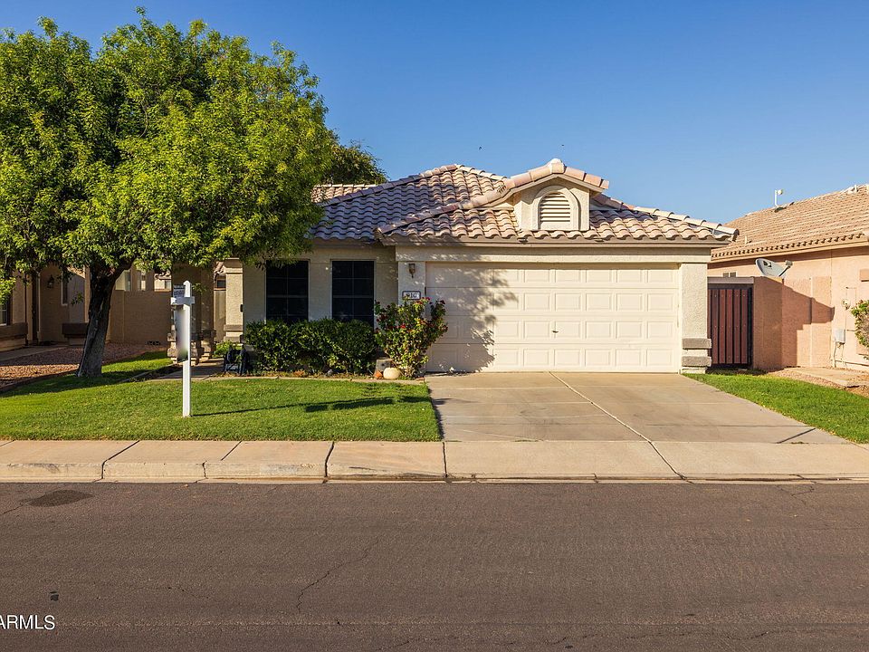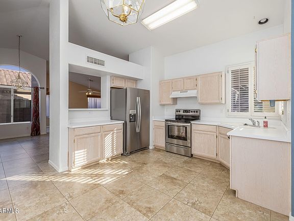 *Seller to offer $1000 credit to close in opening in den officially making it a 3rd bedroom. Den already has a door, closet and a window* Only minutes from Downtown Gilbert, this charming home offers an open concept floorplan with vaulted ceilings and plenty of natural light. Neutral tile throughout makes cleaning a breeze. Washer, Dryer and Fridge included. New AC in 2018, new roof in 2019, new water heater 2023.