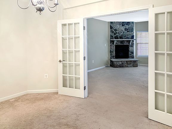 A flexible dining area with glass French doors can double as a home office, while multiple closets including a foyer coat closet, additional storage closet, and the primary walk-in provide plenty of storage.