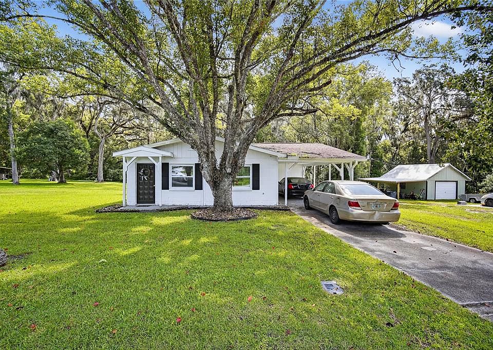 Move-in ready and fully renovated, this charming 2-bedroom, 1-bath block home in North Brooksville Heights offers peace of mind with a complete overhaul in 2022, including all new electrical wiring, plumbing, drywall, windows, luxury vinyl flooring, roof, and stainless-steel appliances. The updated kitchen features granite counters, solid wood cabinets, and modern finishes that flow seamlessly into the open living and dining areas, creating a light-filled and functional space. Both bedrooms are thoughtfully designed with ample closet space, while the bathroom showcases stylish upgrades. Enjoy morning coffee or evening relaxation on the covered rear porch overlooking the spacious yard with mature shade trees, perfect for gatherings or a quiet retreat. Additional highlights include central A/C and heat, a carport with parking for two vehicles, new lighting, public utilities, and a convenient in-town location close to schools, shopping, dining, and medical facilities. Situated on a 0.21-acre lot with sidewalks and paved roads, this home qualifies for USDA financing—purchase with ZERO down payment! Whether you’re a first-time buyer or looking to downsize into something turn-key, this home delivers modern comfort, affordability, and reliability in a desirable Brooksville neighborhood.