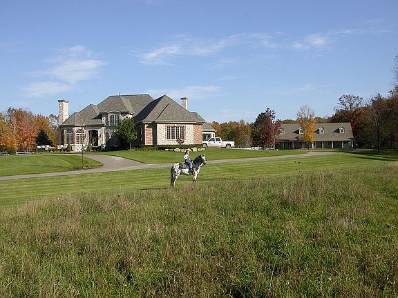 Custom French country house sits on 14.5 rolling acres just 4 miles north of clarkston. 7 stall barn with 74x165 indoor arena built by award winning Orchard Construction. Hydro seeded pastures provide quality fenced grazing and beautiful scenery. Property boundaries are mature oak trees.
