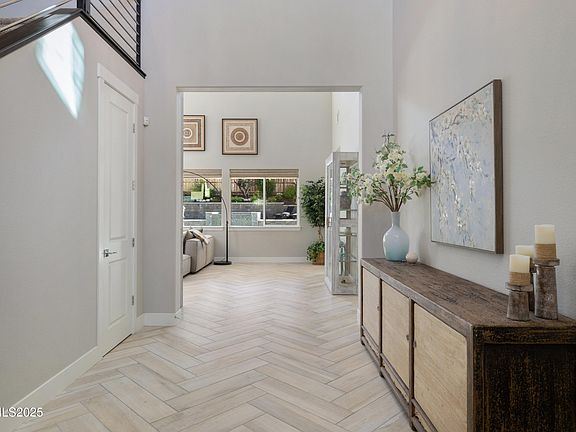 Welcome to this exceptional resort-inspired home, situated in one of Verdi's most accessible neighborhoods. Thoughtfully designed with a bright, open-concept layout, this residence features a beautiful kitchen with premium Cambria countertops on the island and dining area, perfect for both everyday living and entertaining. The spacious living room and separate dining space flow seamlessly, creating an inviting atmosphere throughout. Designer touches elevate every corner, including Hunter Douglas blinds in the main living areas and the luxurious primary suite, which serves as a serene retreat complete with dual walk-in closets and a spa-like bathroom. Enjoy immersive audio throughout the home with a built-in Sonos entertainment system. Step outside to your private oasis complete with a sparkling pool and spa, covered pool equipment, and multiple areas designed for relaxation or entertaining. The effortless indoor-outdoor flow makes this home ideal for hosting gatherings or simply enjoying quiet evenings under the stars. Meticulously maintained and completely turnkey, this home is ready for you to move in and begin your next chapter in style.