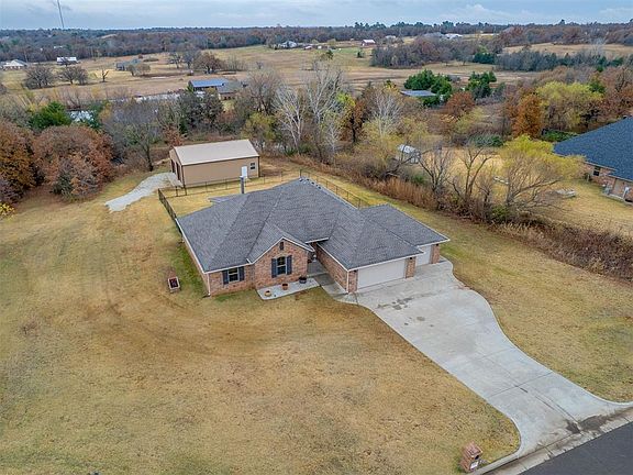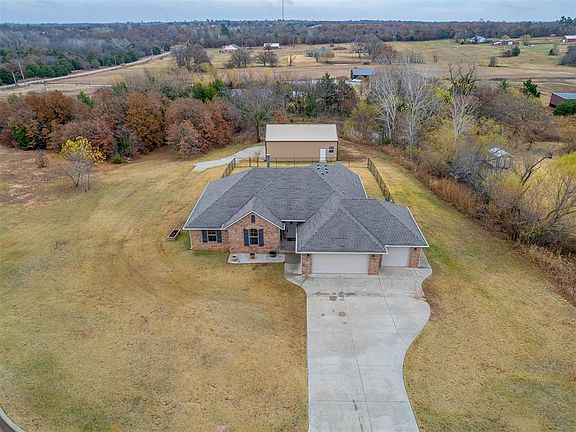 Home Sweet Home! This one has everything you have been looking for featuring 4 bedrooms, 2 baths, 3 car garage plus a 30x40 shop with overhead doors! Beautiful tall windows offering exceptional natural light, all tile floors, open floor plan, large pantry, center island kitchen, trendy floating shelves, generous lighting and more! You will love the large private master bath with large tub walk in shower, double vanities and a generous walk in closet. This home is in impeccable condition and waiting for your holiday celebrations, just bring your decor and personal touches! Wonderful manicured acreage bordered by small creek and trees. Just minutes from I-240 and you are city bound. Make your appointment today!