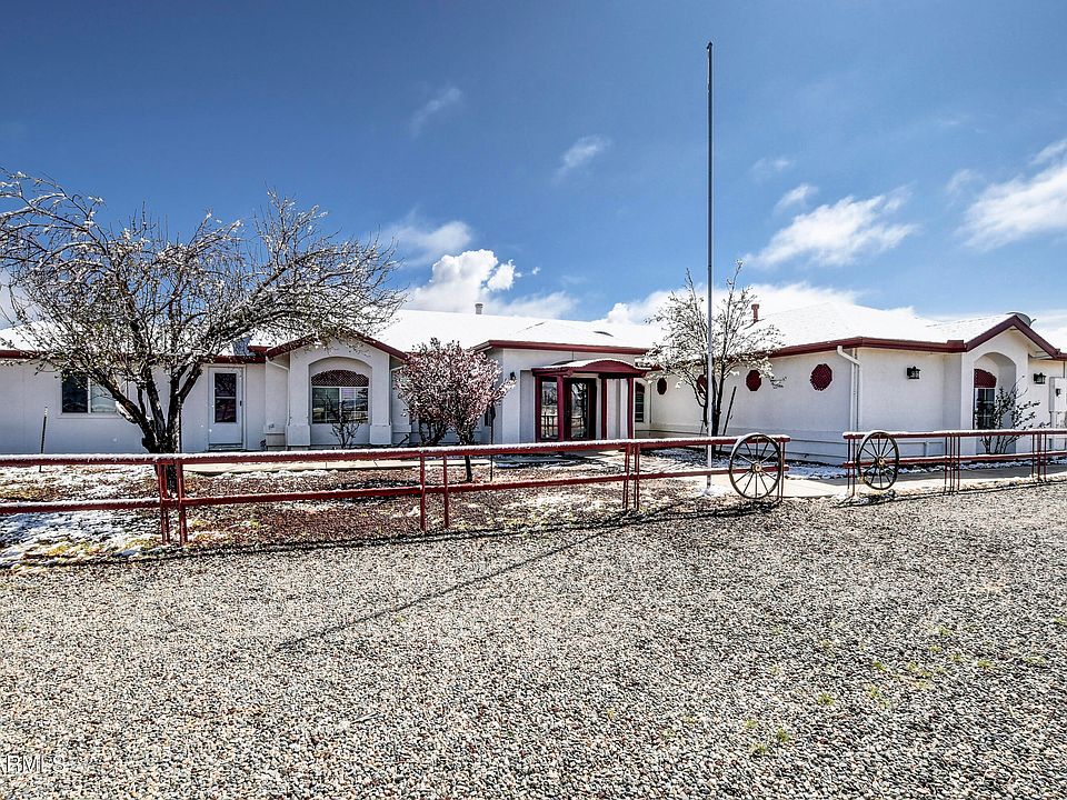 HUGE PRICE REDUCTION! Discover the perfect blend of comfort & functionality in this open concept 3,380 sq. ft. home located in Prescott Valley. Set on an expansive 9.45 acres, this property offers ample space for both relaxation & recreation. This beautifully designed home features 4 bedrooms, and 3 baths, providing plenty of room for family and guests. Built in 2004, the residence showcases high ceilings, incl vaulted ceilings and skylights that fill the living spaces w/ natural light. The property boasts a remarkable 1,500 sq. ft. utility bldg./garage, constructed in 2008, ideal for storage, a workshop, or additional projects. There is additional 600 sq ft building ideal for extra storage, work out room, etc. The 2232 sq ft barn is spacious & ready for your 4-legged family member