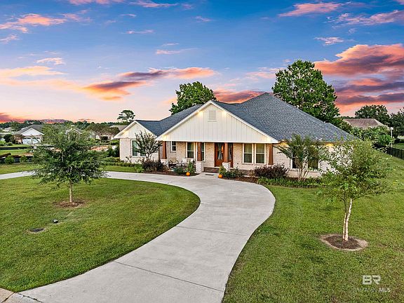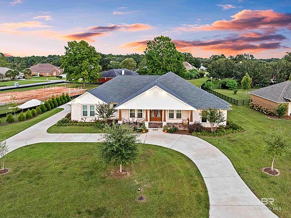 Discover Lakeview Estates, a neighborhood set in the heart of the Glenlakes golf course community. Glenlakes Golf Club offers 27 holes of truly memorable golf. Residents can also enjoy fishing or kayaking on Lake Muriel and may purchase an optional membership to use the pool at the clubhouse. This prime location puts you near Graham Creek Nature Preserve, OWA, and Tanger Outlets. Built in 2022 by Chrysalis Builders, this Gold Fortified home sits on just over half an acre and offers 2,470 square feet with 4 bedrooms, 3.5 bathrooms, a flexible bonus room, and elegant quartzite countertops throughout. Thoughtful updates include tile flooring extended throughout the home and onto both porches, a new mudroom and broom closet, a custom tiled shower in the Jack-and-Jill bath, and a sleek tile kitchen backsplash. Step inside to a warm and welcoming foyer with wood accent walls, opening into the living area with vaulted ceiling, wood beam detail, and a cozy electric fireplace set in a brick accent wall. Sunlight pours through the windows overlooking the screened back porch and backyard, creating the perfect backdrop for everyday living. The kitchen is a true centerpiece with stainless steel appliances, a dual-fuel range, custom pendant lighting above a large island with bar seating, and a walk-in pantry. The separate dining area allows plenty of space for family meals. The primary suite is a spacious retreat with tray ceiling, a spa-like bath featuring double vanity, private water closet, and an elegant floor-to-ceiling custom tiled walk-in shower with three shower heads, plus a walk-in closet. Three additional bedrooms provide plenty of room for family or guests, with two sharing a Jack-and-Jill bath and another full bathroom nearby. The laundry room is equipped with a sink and shelving for storage, while a half bath leads to the screened back porch with outdoor wet bar and gas hookup for a grill. A circle drive, side-entry garage, and gutter system complete this home. Buye