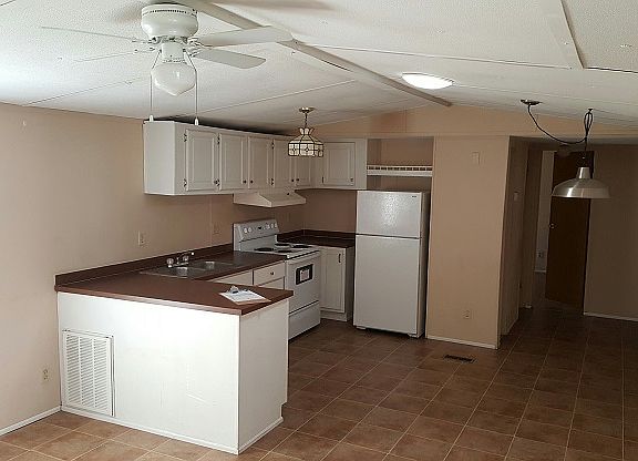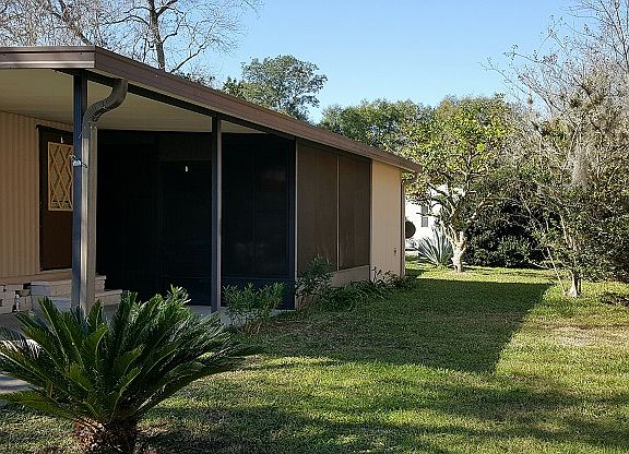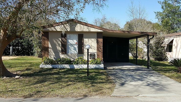 2 Bedrooms and 1 1/2 bathrooms. Includes Screened Porch, Carport, utility room. Mobile home park includes Clubhouse with fitness gym, billiards table, and other amenities as well as community swimming pool.