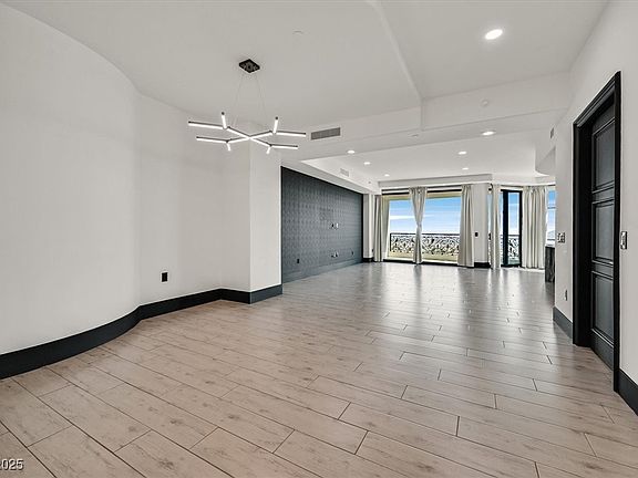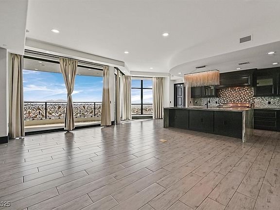 Prime way up High 12th floor Unit with unobstructed views of the entire valley, turnkey condo, the best 2-bedroom residence in One Queensridge Place, an exclusive high-rise community. 24/7 guard-gated entrance, leave your car w/valet or park in your private 2+ car garage & take the elevator to the 12th floor. Inside, witness a nightly spectacle of shimmering lights—from Downtown Las Vegas to the iconic Strip and beyond—framed by floor-to-ceiling windows. The sleek interior, transformed by a stunning $250k+ remodel, features modern wood-look tile, updated window/door treatments, Beautiful light fixtures. The centerpiece of this high-rise haven is the kitchen, a dazzling space w/ Viking Professional appliances, sparkling hex tile backsplash, & 9’ double waterfall island finished in Roxwell Cambria quartz. Huge Steam Shower in Primary. Enjoy glittering panoramas of the city, whether you’re serving drinks at the built-in bar, watching a movie in the great room, or lounging on the balcony.