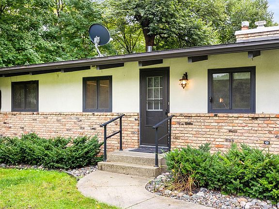 Beautiful 1 acre lot! 3+BR, 2BA rambler home features hardwood floors, 2 fireplaces (1 gas, 1 wood burning), vaulted ceilings, new 2025 boiler furnace. Walk-out lower level to cement patio, 28x12 sunroom/3-season porch overlooking backyard to enjoy nature. Treed yard with creek boundaries, 15x8 storage shed, single car above with floor drain plus single tuck-under heated garage/workshop, storage plus vegetable/wine cellar/cold storage.
