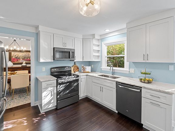Wood-burning fireplaceVaulted ceilingsBamboo floorsSpacious bedroomsCozy family roomSunny eat-in nookSpa-like primary suite