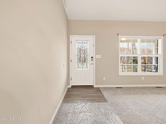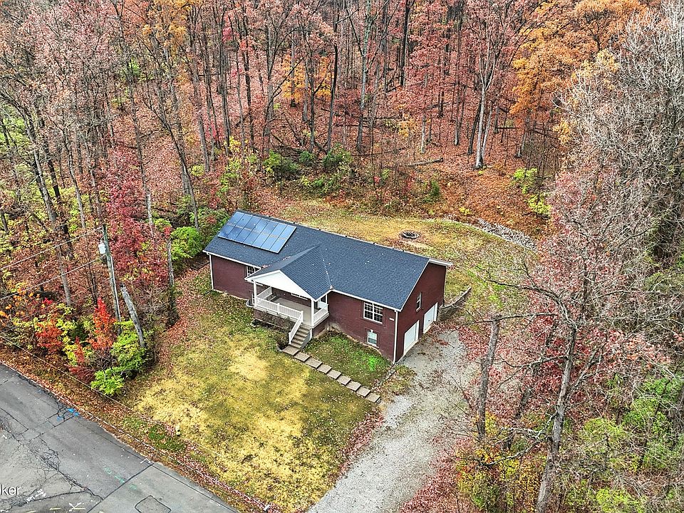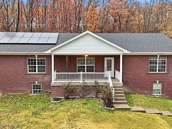 Welcome to your private little hideaway on almost 3/5 acre! This all-brick raised ranch is less than 10 years young, surrounded by woods on a dead-end street, and even comes with solar panels to help keep those utility bills low. Inside, you'll love the open living room/kitchen layout that has vaulted 9 ft ceilings and the huge primary suite with a walk-in closet, double vanity, stand-up shower, and a big window overlooking the trees. The other two bedrooms share a Jack-and-Jill bath, and laundry is on the main floor. The walkout basement is finished with another full bath, tons of storage, and access to the oversized 2-car garage plus a secret storage shelter. Fresh paint, updated flooring, and ready for you to move right in.
