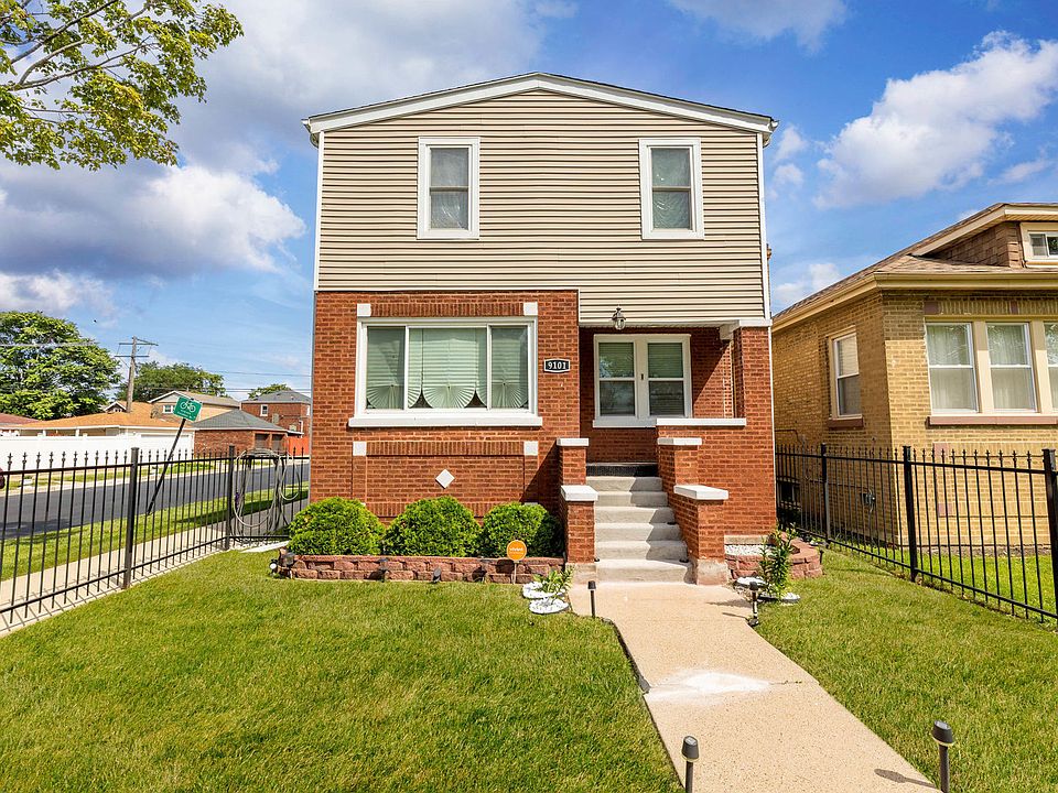 Well-maintained Historic Chicago Bungalow, fully rehabbed in 2017, offering a full second floor and modern finishes throughout. Bright open main level with hardwood floors, recessed lighting, and a contemporary kitchen with granite countertops, island, and stainless steel appliances. Luxurious bath with double vanity and marble tile. Finished basement with sleek fireplace adds flexible living/entertaining space. Gated yard. Near schools, shopping, and transportation. Move-in ready!