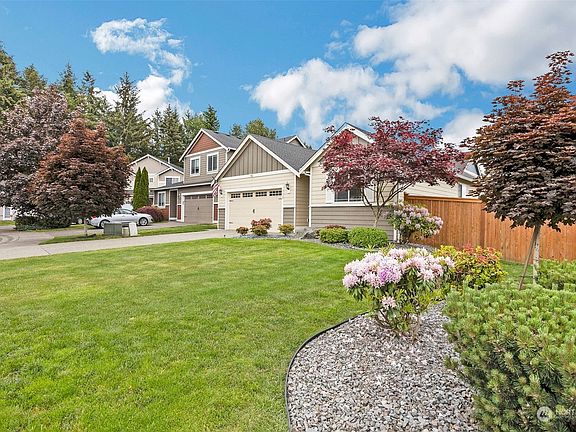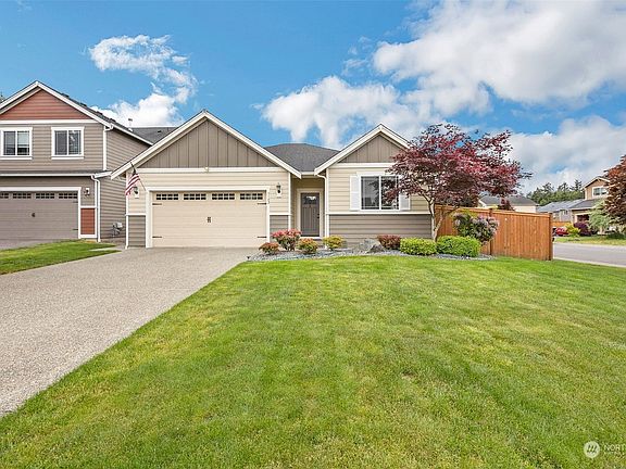 Pride in home ownership shows with this meticulously maintained rambler located on the corner lot of the cul-de-sac! Boasting NEW stainless-steel appliances, NEW carpet, 2-year-old water heater, and fresh paint throughout. This stunning home features 9-foot ceilings, dark wood cabinets, spacious kitchen, and open concept living complete with cozy fireplace. Spacious primary suite with coffered ceiling, oversized walk-in closet, and 5-piece ensuite. Fenced and beautifully landscaped. Oversized two-car garage, this home truly has it all! Conveniently located close to nearby schools, shopping, and restaurants with quick access to Hwy161 and JBLM. Don’t miss out on the opportunity to make this rare gem your new home!