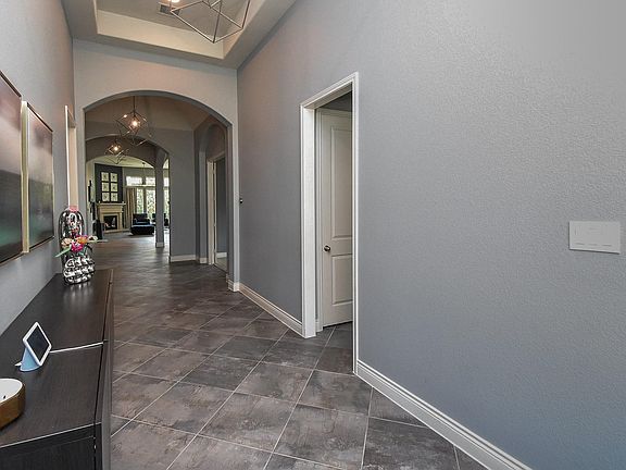 Stone fireplaceWide open floor planStainless steel appliancesTile flooringGranite countertopsCovered patioDrop-in jetted tub