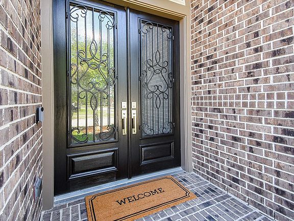 Enjoy peace & quiet in this beautiful one story home in Mirabella. Resting on a corner kid-friendly cul-de-sac lot, this 4-sided brick home boasts a premium elevation, wide open floor plan, tile flooring, stone fireplace, sprinkler system, water filtration system, tankless water heater, full gutters and a covered patio. Prepare incredible feasts in the island kitchen, equipped with granite countertops, double oven,tile backsplash, stainless steel appliances, 42” Espresso cabinets, pendant lighting, and under-cabinet lighting. The spa-like primary suite features dual vanities, his/her closets, a drop-in jetted tub, and a separate huge shower. Super clean & well-maintained! Community comforts of Mirabella include clubhouses, pools, splash pads, tennis courts, sports courts, parks, playgrounds, and a dog park. Commuters enjoy the ease of access to Katy, the Energy Corridor, and Downtown Houston via the Grand Parkway and Highway 290. Walking distance to the community elementary!