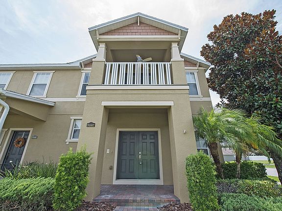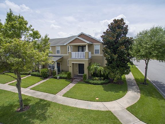 Welcome home to this beautiful 3 bedroom, 2.5 bath town house. This two-story property features a fantastic open floor plan with tile flooring throughout the main areas of the house and carpet in the bedrooms. The kitchen features corian counter tops, 42" cherry cabinets, stainless-steel appliances, and an eat-in area. Right off the kitchen is the dining room perfect for entertaining and family meals. Upstairs, there is a quaint loft perfect for an office, and in the master bedroom there is an attached balcony with a great view of the basketball courts, playground, and community pool. In the rear of the property is a courtyard patio perfect for an outdoor lounge area; the largest patio available. The patio connects the detached 2-car garage equipped with garage door remotes. The Enclave at Moss Park is close to all Lake Nona schools and restaurants. Only minutes to the east is the beautiful Moss Park which is known for its great camping, picnic areas, swimming, fishing, and built-in grills.