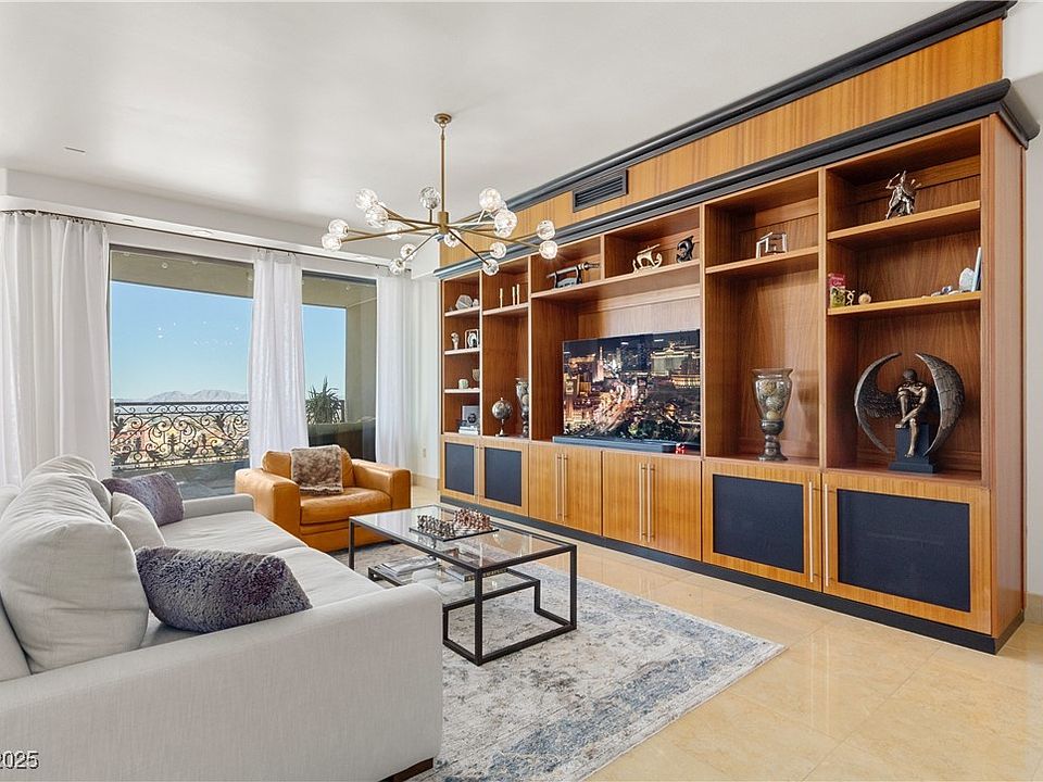 Welcome to Unit 807 at One Queensridge Place, an exceptional fully furnished, turn-key residence on the 8th floor. This 2-bedroom home is a perfect blend of sophistication and comfort, featuring elegant updates like designer light fixtures and custom window treatments. The residence includes a dedicated home office, ideal for productivity or creative pursuits, and a gourmet chef's kitchen, perfect for culinary enthusiasts, complete with premium appliances and exquisite finishes. Enjoy breathtaking panoramic views of the iconic Las Vegas Blvd, the serene community pool, and the majestic Red Rock Mountains. Whether you're entertaining or unwinding, this residence offers luxury living at its finest. One Queensridge Place offers exceptional amenities, including a fitness center, spa, in/out pools, theater & daily coffee bar, offering the best in high-rise living.