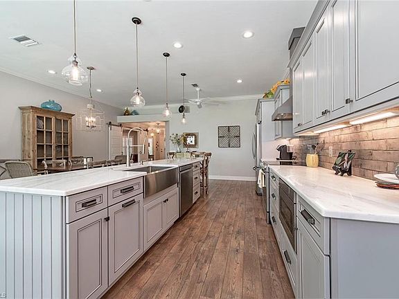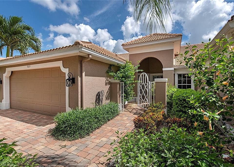 V.3033 - Stunning! Owner spared absolutely no expense with upgrades & remodels throughout this fully furnished 3BR pool villa w/ 2 car garage. This charming home is brilliantly redesigned with a reading-sun room adding extra living space that overlooks lanai, pool & spectacular golf & water views with mesmerizing lighted fountains. Open floor plan includes fully remodeled kitchen w/level 5 granite, stainless appliances, pull-out cabinets w/ extra storage space, fully remodeled master bath, guest bath & laundry room; also Plantation shutters, crown molding,all hard surfaced floors, 2020 hot water tank, hurricane shutter, more! Move -in-ready. Spring Run is a financially stable,BUNDLED 18 hole golf community w/ clubhouse, restaurant, bar. Social activities abound! Fitness, tennis, bocce, pickleball. Private Beach Club available. Close to Naples, Ft Myers/Sanibel. Minutes away from upscale Coconut Pt Mall, Outlets, beaches, world-class dining, RSW Int'l Airport, FGCU.