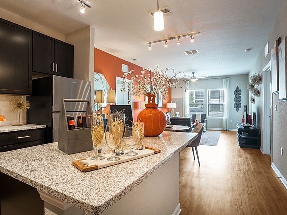 - Exterior features: Barbecue, Custom Espresso Cabinetry with Stainless Hardware, Expansive Dog Parks, Granite Countertops, Pet Friendly Community Spaces, Pet Grooming Station, Plush Pile Carpeting in Bedrooms, Premium Coffee Bar, Screened-in Private Balconies & Patios, Split Rent Payments with Flex, Stainless Steel Appliances, Subway Tile Backsplash, USB Charging Station Outlet in Kitchens, View Type: Lake Views*, Wood-Style Plank Flooring