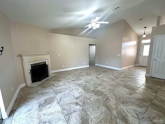 Beautiful home in Desirable Lillian Woods ~ This home has all TILE flooring - great for people with allergies ~ Large Living Room with High Ceilings, Gas Fireplace (as-is) and Ceiling Fan ~ Kitchen is fully equipped and comes with a Breakfast Nook ~ Formal Dining Room ~ Split Floor Plan ~ Master Bedroom with en-suite bathroom featuring Double Vanity, His and Hers Walk-In Closets, Soaking Tub and Separate Shower ~ 3 Guest Bedrooms and Guest Bathroom ~ Screened back porch ~ Large fenced backyard with Shed for tenant use ~ 2 Car Garage ~ This home is about 15 minutes to NAS Pensacola and 10 to Corry Station and the Naval Hospital