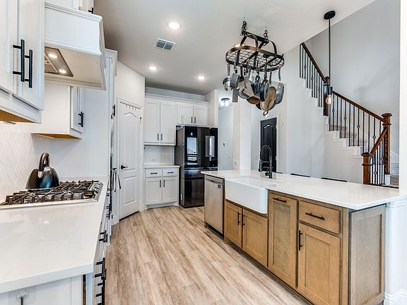Welcome to this stunning two-story home that combines timeless style with modern upgrades, thoughtfully designed for both comfort and entertaining. Step inside to find generous-sized rooms filled with natural light from elegant box windows and soaring ceilings that enhance the home’s open and airy feel. The chef’s kitchen is the centerpiece, featuring a shiplap-accented island, gas cooktop, farmhouse-style apron sink, upgraded fixtures, and not one but two pantries, offering exceptional storage and function.