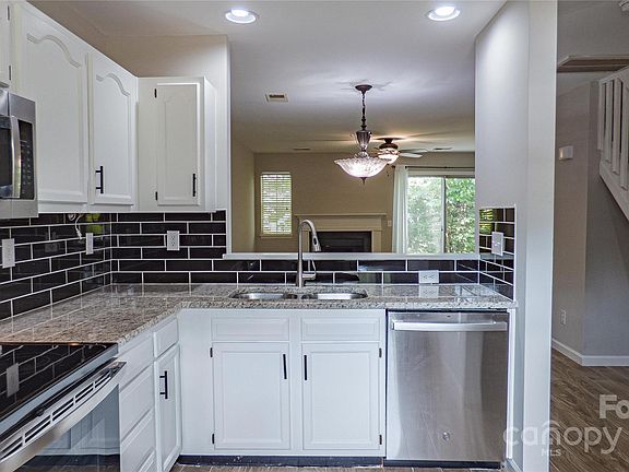 Welcome to this beautifully updated 2-bedroom, 2.5-bath home featuring stylish upgrades and move-in ready comfort. The kitchen shines with granite countertops, stainless steel appliances, and freshly painted cabinets, perfect for both everyday cooking and entertaining. The main level boasts durable tile flooring, while upstairs offers brand-new carpet for a fresh, cozy feel. The entire home has been freshly painted throughout, giving it a bright and inviting look. With an HVAC system only 2 years old, this home offers both peace of mind and energy efficiency. Enjoy a peaceful evening on your back patio surrounded by mature trees. Storage room off of back patio. Don’t miss the chance to make it yours! This home is Move In Ready! The fireplace is wood burning and has never been used it is sold as is. All appliances including washer & dryer are only 2 years old. The home is being professionally measured by 9/28.