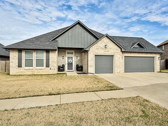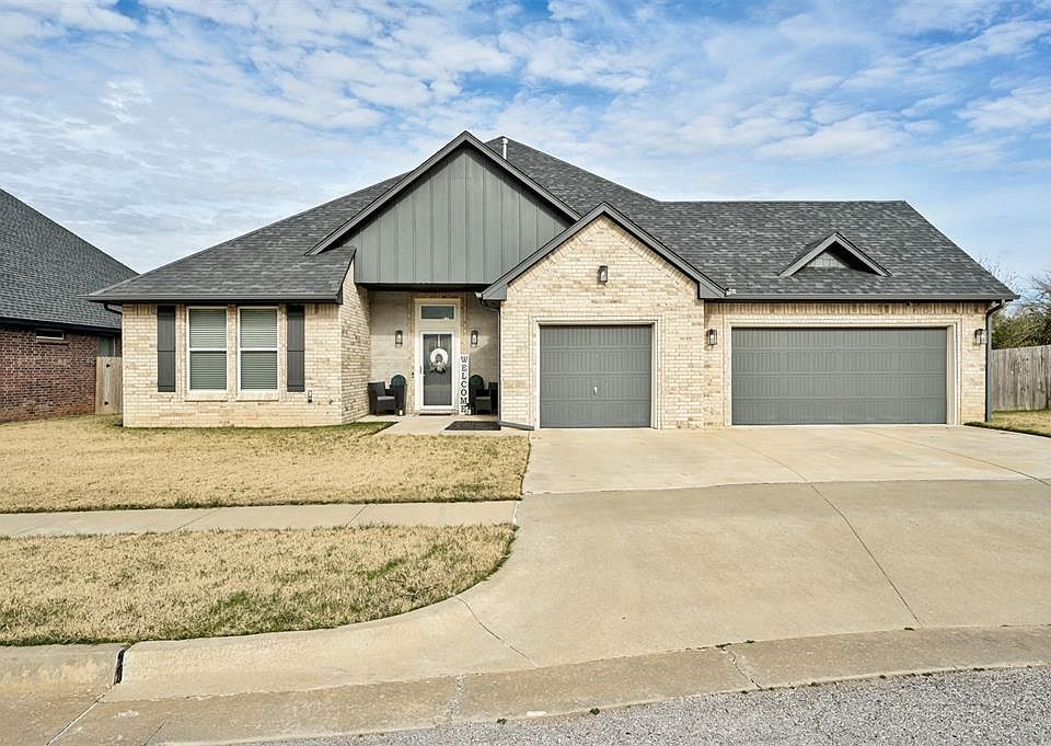 WELCOME HOME! This gorgeous 3-bedroom, (PLUS OFFICE/FLEX ROOM), 2-bathroom charmer is the one you’ve been searching for. Nestled on a spacious cul-de-sac lot in the peaceful Carlisle Crossing addition, just down the street from Stone Ridge Farms Elementary, this property offers everything you could ask for and MORE! Custom-built in 2021, this beauty features thoughtful upgrades and personal touches throughout, making it truly one-of-a-kind. Upon entry, you’ll fall in love with the open, airy layout, the wood-look tile flowing seamlessly throughout the main living areas, the soaring ceilings, and a show-stopping living room anchored by a striking white stone wall and cozy gas fireplace.
