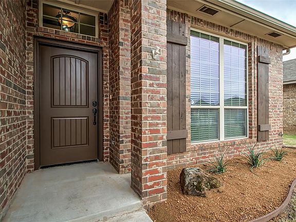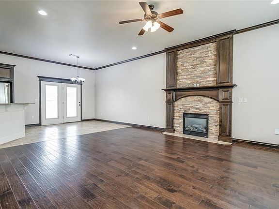 So Beautiful! This home has engineered wood floors and a gorgeous stacked stone fireplace in the living room! You'll love the tall ceilings with crown molding, and the flow of the floorplan on this home. The Kitchen is open with a breakfast bar, but also giving you ample cabinets in a nice, rich wood stain! The stainless steel appliances are a nice upgrade with Gas Stove and Microwave & nice Vent Hood. Its a gorgeous space! Large Primary Bedroom with Full Bath featuring Dual Vanities, Jetted Tub, and Nice walk in Shower. There is a large walk in closet! There are 2 more bedrooms with full bathroom off the hallway. There is extra cabinets built in for all the storage you need! The home has New carpet, Fresh new paint inside and outside, and it is move in ready! There is a nice covered patio for seating or those cookouts you have planned! New fence and posts just installed for the whole backyard! The storm shelter is in the garage floor. Savannah Estates has a swimming pool, sidewalks, and greenbelts, and is in Piedmont Schools! This location is close to all the amenities! Come See it today!