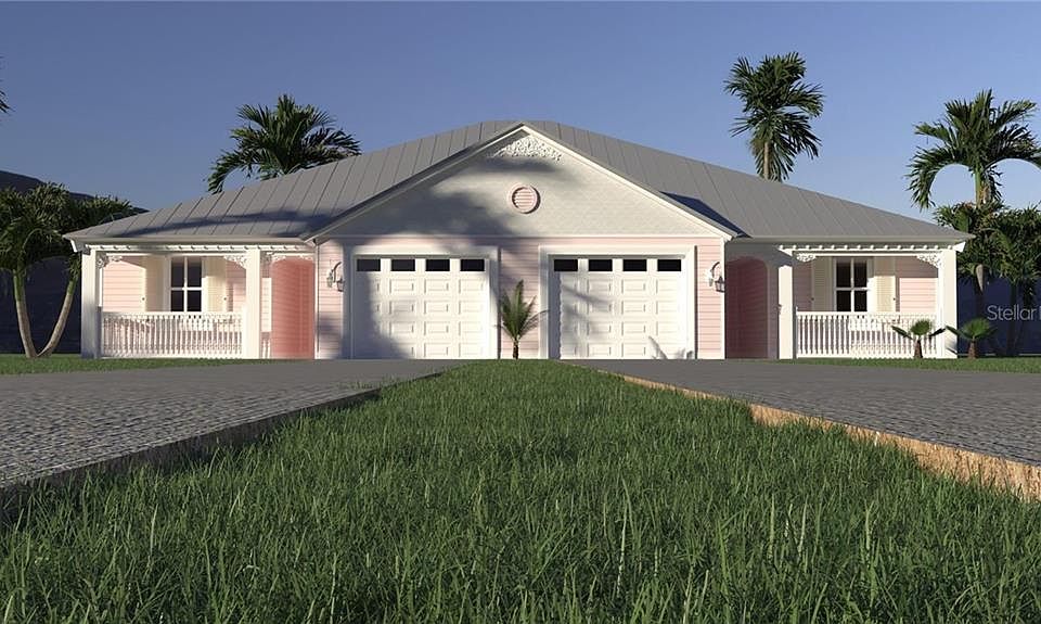 Under Construction. Maintenance free living! Why pay rent when you can live in this beautiful Key West Style condo/duplex? One of the least expensive new construction properties in South Gulf Cove! Three bedroom, two bath twin villa condo. Amazing opportunity to own in one of SWFLs Premiere waterfront communities! Enchanting Key West Style villa with cozy front patio and metal roof. Large, open floor plan with impact windows (no need for shutters). As you walk in you'll notice soaring 9' 4" ceilings, separate family room and dining area and triple sliders leading out to the expansive covered lanai. The well designed kitchen has quartz counters, stainless steel appliances and all wood cabinets. Master bath features dual sinks, quartz tops a large shower and separate water closet. The light and airy master bedroom has a walk in closet. Guest bedrooms are nice size and the guest bath has quartz and a tub and beautiful custom tile. Full one car garage with brick paver driveway. South Gulf Cove is a boaters paradise with miles of canals! Shopping, restaurants and several beaches close by- Englewood/Manasota and Boca Grande. The price is for one half of the paired villa condo. Exterior and interior are an artistic representation. Final finishes to be determinate by buyer and builder. Rooms sizes are approximate. Taxes only reflect the lot. Condo docs available upon request. Pictures may vary from final product