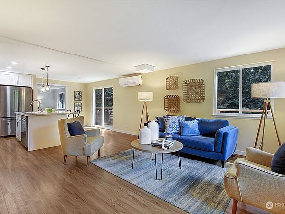 One of a kind site at the end of a private lane in the desirable Seaview n'hood. The home sits on an easy care, landscaped, fenced yard w/stylish deck, lots of extra parking & custom stone landing. Property has 20,000+ sq ft south of the fence to ensure ultimate privacy & seclusion. Nifty house all done & ready for you now. Open floor plan, all new kitchen w/island, large dining room & sliders to entertainment sized deck. 3 bdrms & designer bathroom complete the main space. The sunny studio off the garage has cabinet, sink & mini-fridge. 3/4 bath & lg closet. Versatile space for in-home office or guest quarters. New roof & gutters, LVP floors, up to date fixtures & finishes. Small house packs a big punch in a million dollar plus n'hood.