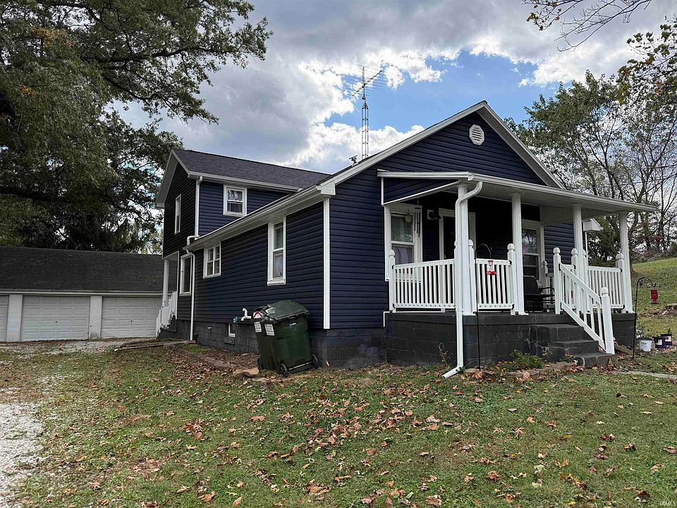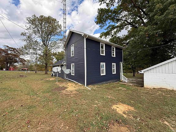 Welcome to your next home — a 4-bedroom, 2-bathroom property on a quiet, partially wooded 2-acre lot. With blue vinyl siding, this home combines recent updates with the ease of country living, while staying close to Jasper, Petersburg, and Huntingburg. Inside, updated vinyl flooring runs throughout the home, paired with neutral paint colors that create a clean, open feel. The floor plan offers space for daily living, work, and gatherings. The primary suite includes a full bathroom and provides a space away from the guests beds. The second bedroom on the main floor is also the laundry room. This could potentially be moved to the basement. The other two spacious bedrooms are located upstairs. Outside, a 3-car garage offers storage for vehicles, tools, and equipment. The setting allows for both small get-togethers and peaceful evenings outdoors. Recent updates include a hot water heater (2024), siding, roof, and gutters (2023), plus a freshly pumped septic system. This home offers a balanced mix of modern features and small-town simplicity — ready for you to move in and make it your own.