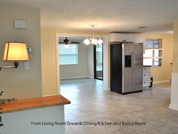 High and dry. Open layout! Recently painted throughout, tiled floors, paver patio, gazebo in fenced back yard. Close to grocery, fitness and park. Has a Bonus room and a vinyl-enclosed porch/workshop in addition to a screened lanai. Oversized 1-car garage with driveway parking for 2.