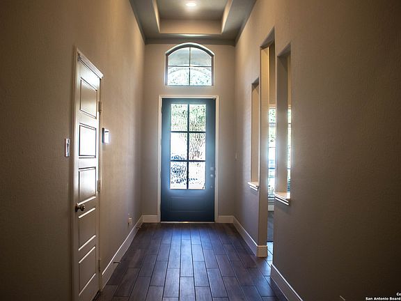 Welcome to this stunning 4-bedroom, 3-bath home located in the desirable Kallison Ranch community. Built in 2019, this well-maintained property offers an open-concept layout with high ceilings, abundant natural light, and modern finishes throughout. The spacious kitchen features a large island with seating, stainless steel appliances, granite countertops, and a walk-in pantry, opening to a bright living area perfect for entertaining. The primary suite includes a garden tub, separate shower, dual vanities, and a large walk-in closet. Additional features include a formal dining room, versatile game room or office with French doors, and a full guest suite. Enjoy outdoor living on the covered patio overlooking the fenced backyard. Community amenities include pools, playgrounds, and walking trails. Conveniently located near shopping, dining, and top-rated NISD schools, this home offers comfort and convenience in one of San Antonio's most sought-after areas. Buyer and Buyer's Rep to verify all information contained herein.