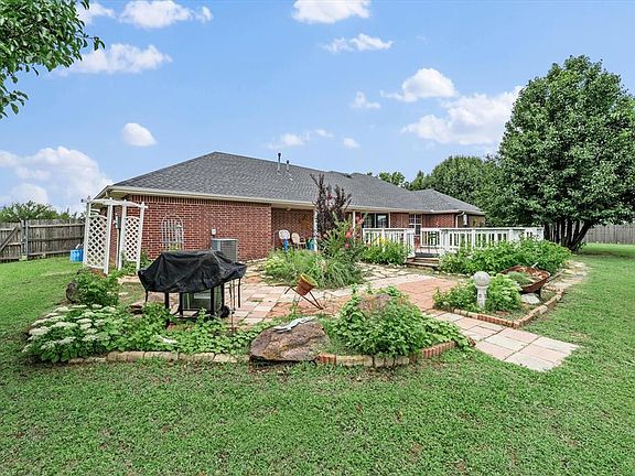 Enjoy Oklahoma evenings from the covered front porch, covered back patio, or expansive open deck – ideal for cookouts, gatherings, and soaking up country sunsets. The property also includes a 2-car garage, storm shelter, and beautifully landscaped yard.